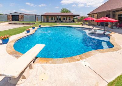 Outdoor Living: Pool with diving board & tanning ledge, covered patio & porch