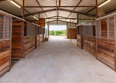 custom boxes. A 5-stall barn with cushioned stall padding. 2 stalls with turnouts. Wash rack with