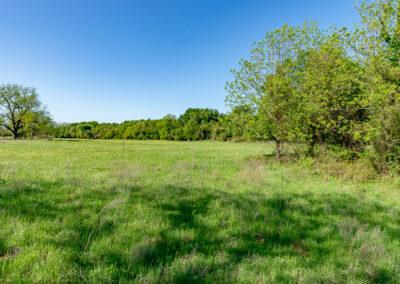 A large elevated plateau with thick to scattered trees and open rolling meadows. Sloping terrain transitions to two fertile river-bottom pastures previously sprigged in coastal Bermuda with large pecan trees. Past and present uses include agricultural and recreational.